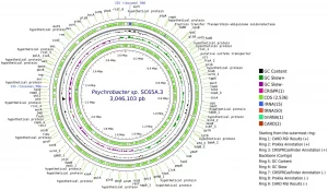 Representación circular del genoma completo de Psycrobacter SC65A.3